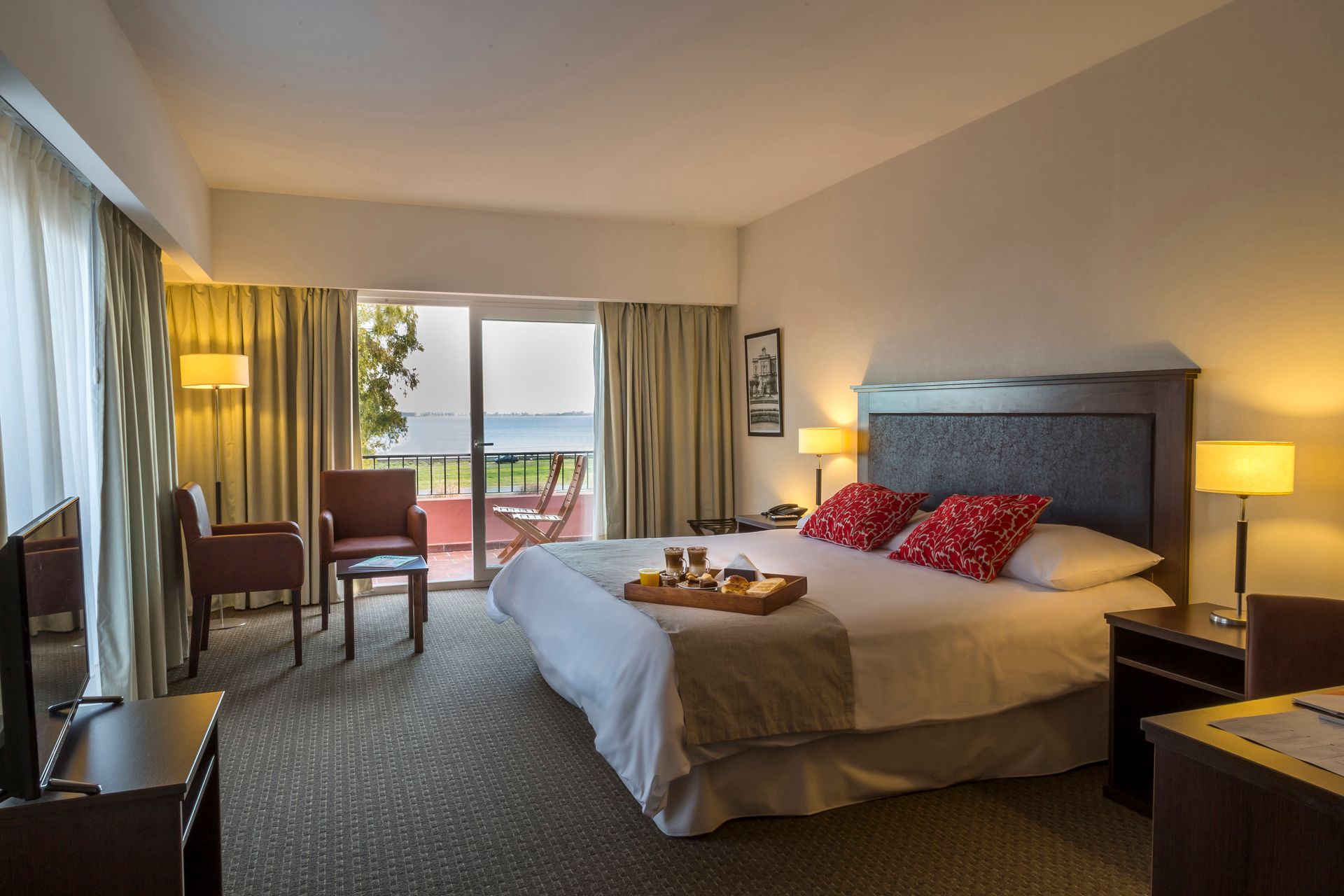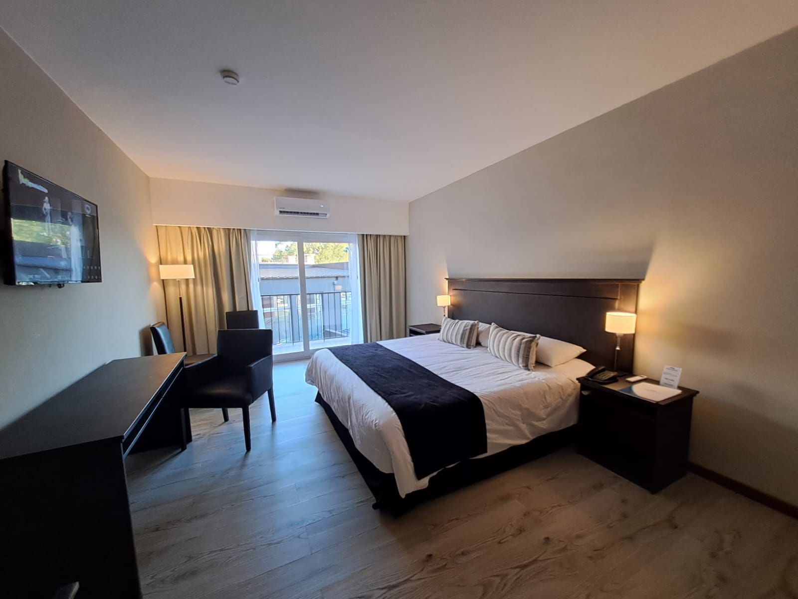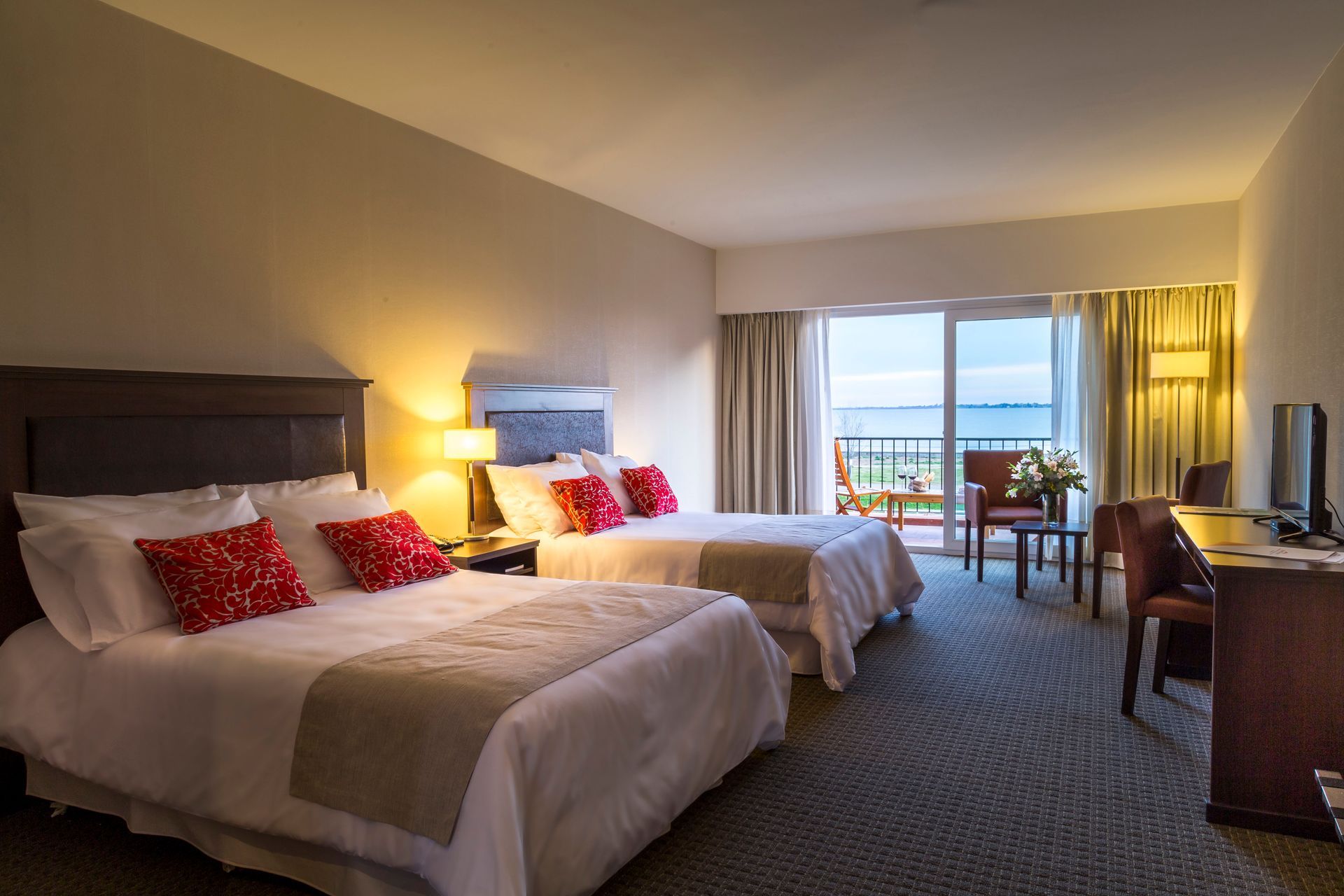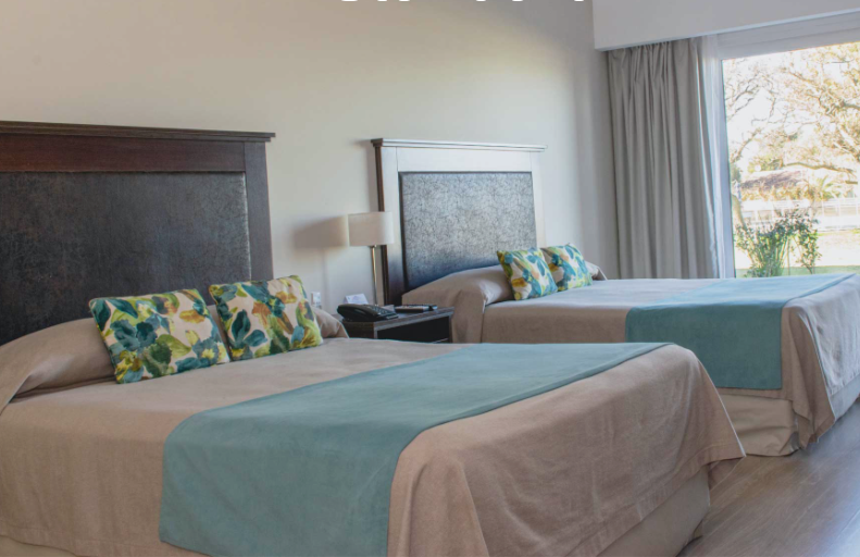 Habitaciones de alta gama con vista de frente o lateral a la laguna de 36 mts2 con dos camas Queen matrimoniales de 1,40 x 2 mts más puerta ventana corrediza. Cuenta con split 2250 frigorías frío/calor, TV 32” mobiliario y blanquearía premium, sillones, escritorio, teléfono, frigobar, caja de seguridad, placard, baño completo, bañera, secador de pelo y amenities.