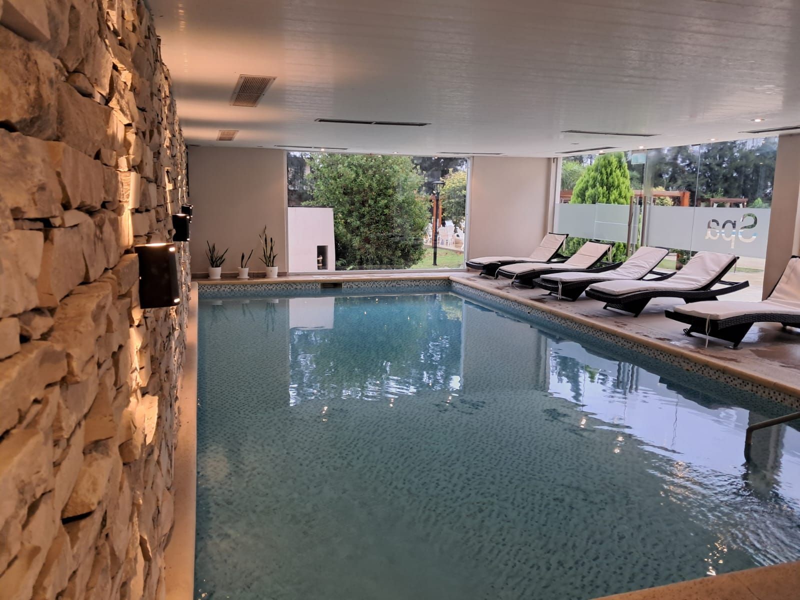 Spa con 2 piscinas climatizadas, sauna seco y húmedo, piscina con cuello de cisne, 3 gabinetes para masajes, 2 duchas, 2 baños.