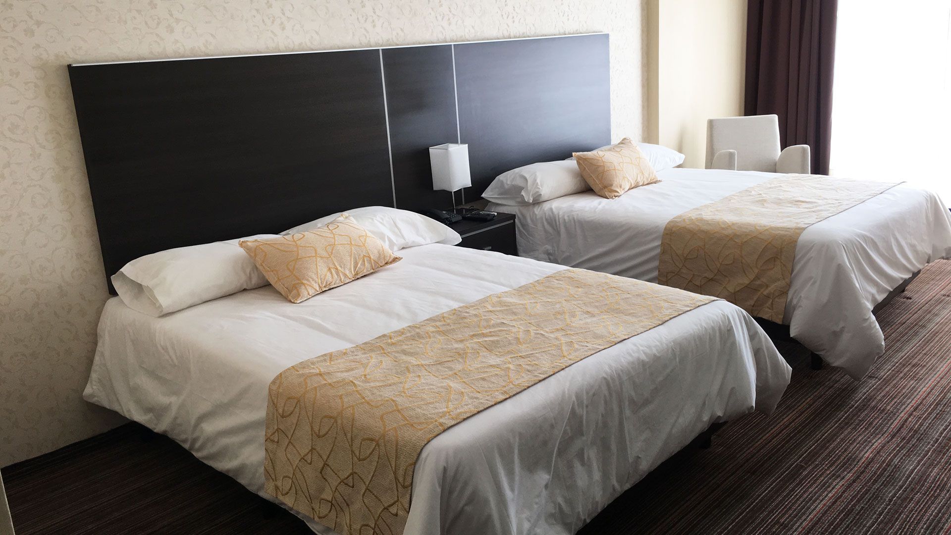 Habitaciones amplias de 35mts2. Cuentan con TV Led con servicio de cable, frigobar y kit de café de cortesía. Cerradura electrónica, climatización individual, sensor de humo, caja de seguridad electrónica, cama EXTRA LARGE con sommier de 2 x 2m, ó dos camas TWIN con sommier de 1,40 x 2m cada una, escritorio y teléfono.