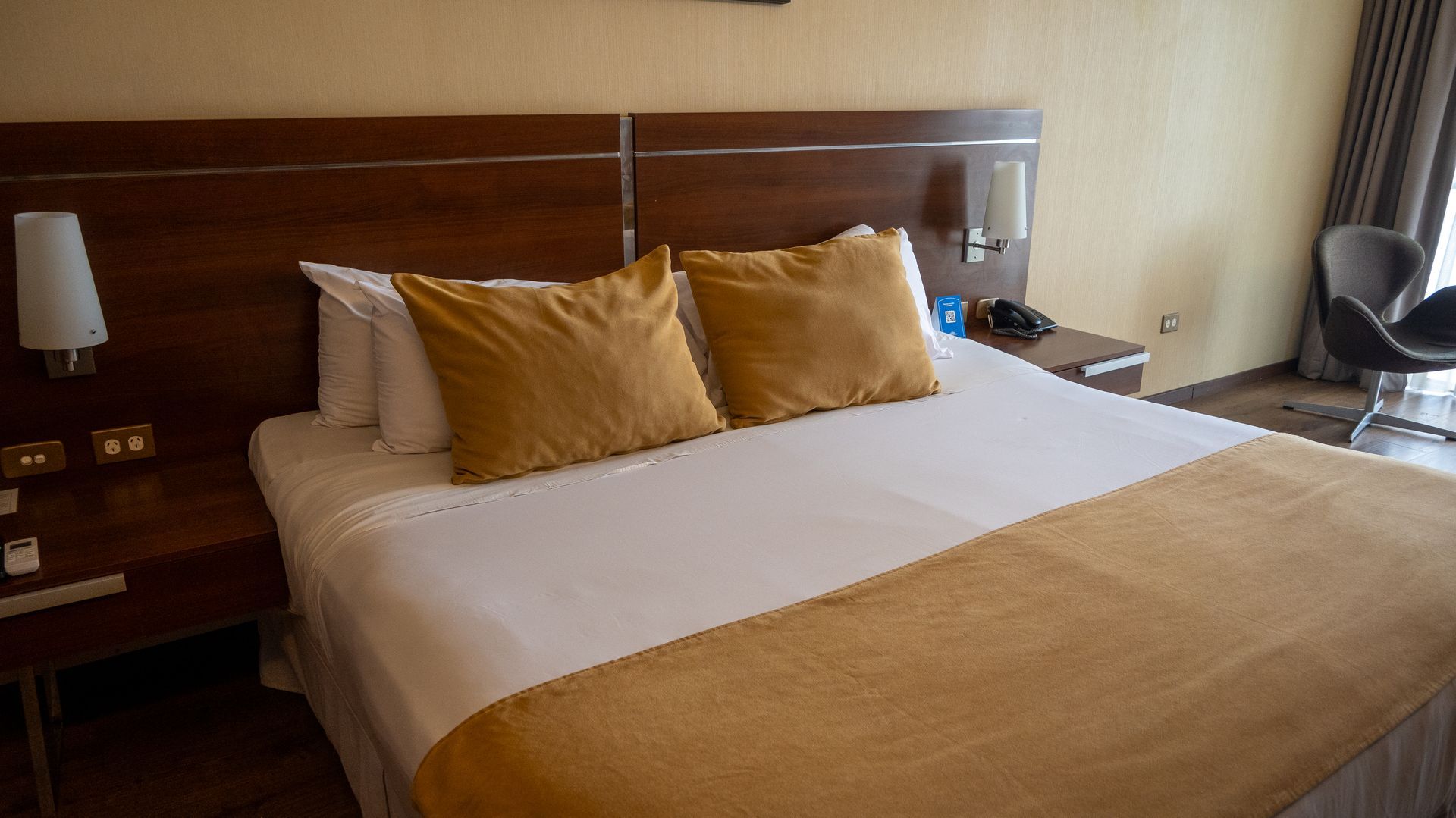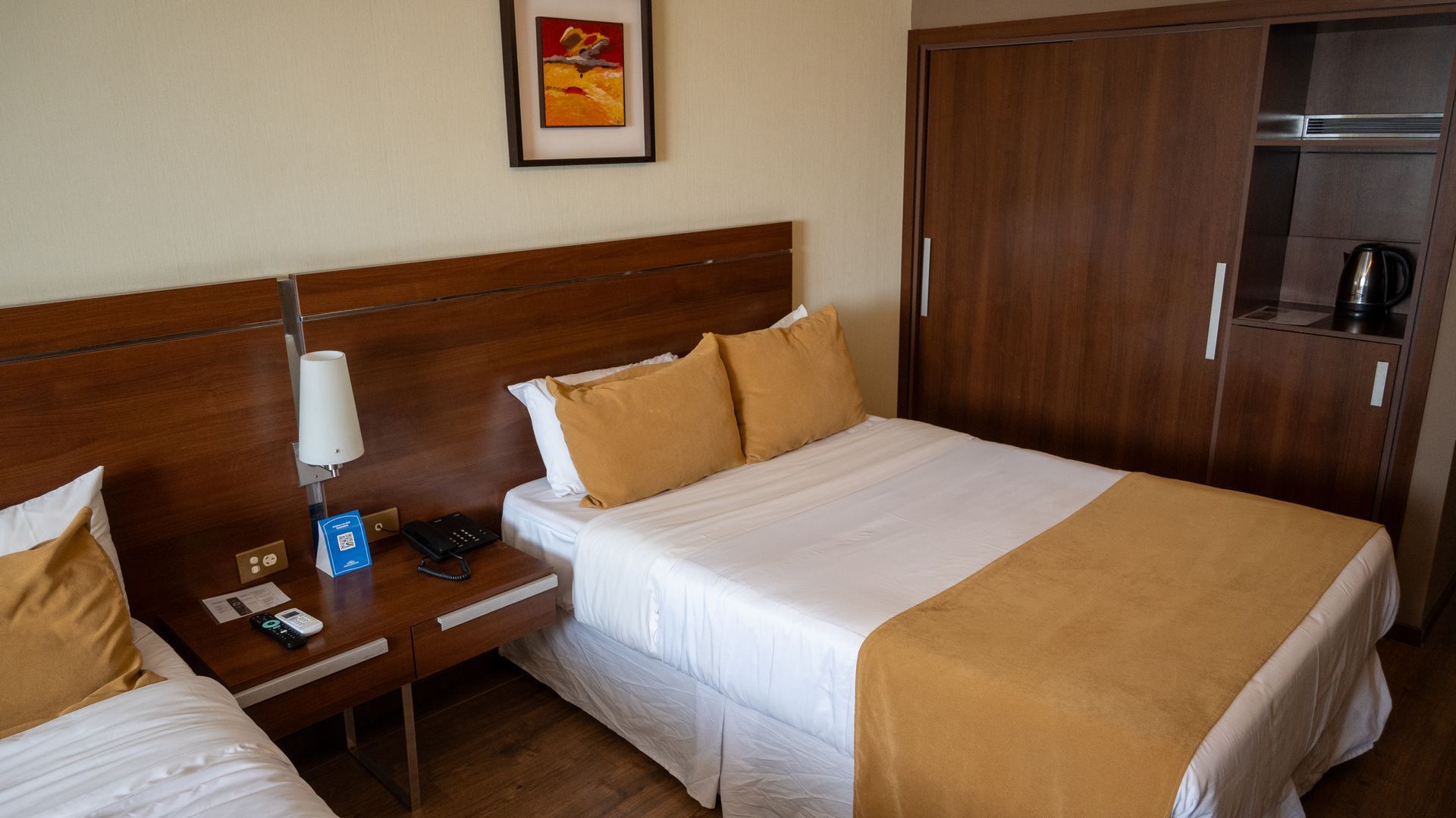 Ideal para quienes buscan un lugar de descanso acogedor con el máximo confort. Ofrece 25 m2 y cuenta con cama King (2 x 2 m), cajilla de seguridad, Smart TV, baño completo con ducha y secadora de cabello, cortinas blackout, teléfono, control individual de temperatura, área de frigobar (con costo), pava eléctrica y zona de trabajo con Wi-Fi gratuito.