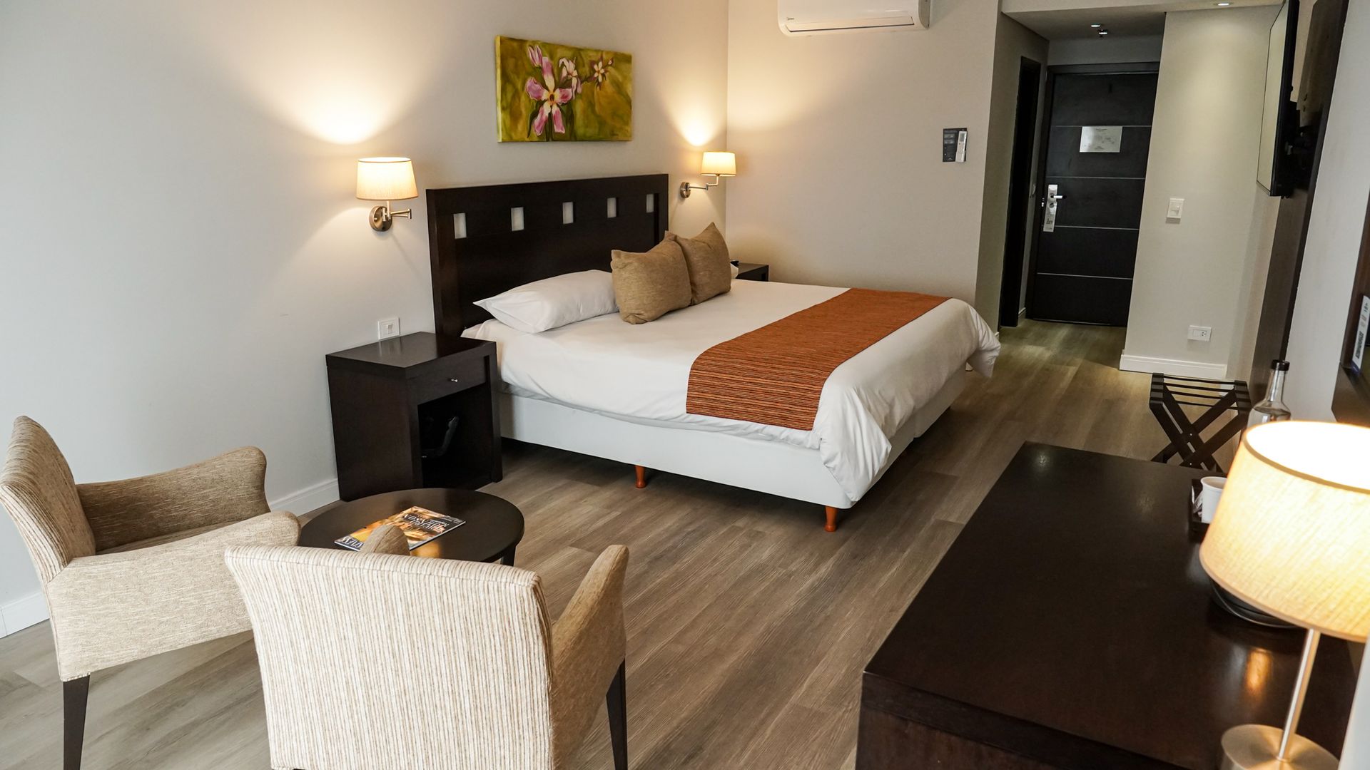 Habitaciones ubicadas en planta baja. Con una decoración elegante, entre sus principales características poseen: aire acondicionado individual frio/calor, TV led 42” con cable, acceso a internet, ddn/ddi, caja de seguridad hasta 15”, cerradura por proximidad, escritorio de trabajo, detectores de humo, cortinas black out y sommiers de alta densidad, espejo desempañante en baño. Todas nuestras habitaciones son no fumadores, las mismas cuentan con bañera